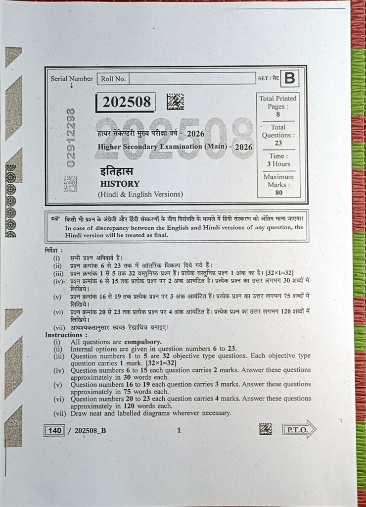 तो प्यार विद्यार्थी यहां पर मेरे द्वारा आप सबके लिए बोर्ड परीक्षा 2026 कक्षा 12 इतिहास विषय का पेपर दिखा दिया गया है आप इस पूरे पेपर को अच्छे प्रकार से देख ले और पूरा पेपर समझ ले जिससे कि आपको यह प्रश्न पत्र अच्छे से समझ में आ सके और आप सब लोग अपनी बोर्ड परीक्षा में टॉपर बन सके