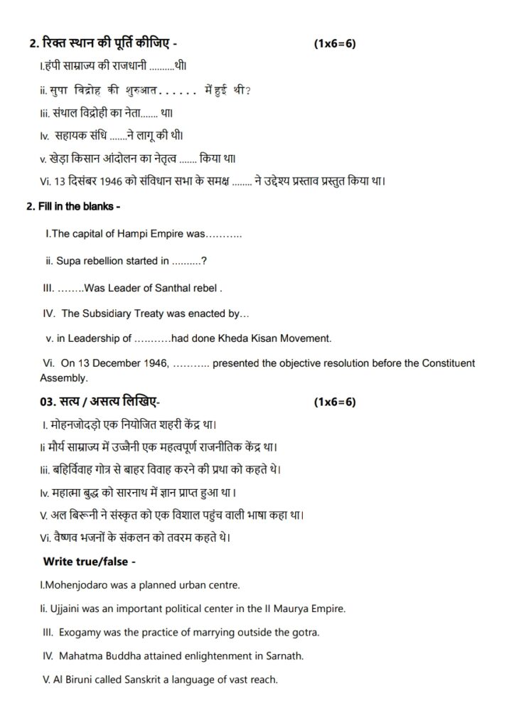 कक्षा 12 इतिहास वार्षिक पेपर 2026 | Class 12th History varshik paper 2026 | Class 12th paper