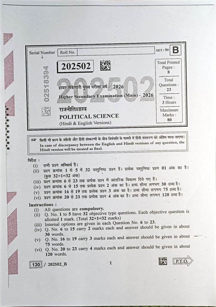 कक्षा 12 राजनीतिशास्त्र वार्षिक पेपर 2026 | Class 12th Political Science Varshik paper 2026 Solutionby Rajesh Vishwakarma30/01/202630/01/2026 oplus_4128 Leave a Reply Cancel replyYour email address will not be published. Required fields are marked *Name * Email * Website Comment * Save my name, email, and website in this browser for the next time I comment. Δ