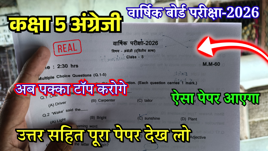 तो प्यार विद्यार्थियों स्वागत है आप सबका आज के इस लेख में आज हम यहां पर देखने वाले हैं आपकी वार्षिक परीक्षा 2026 कक्षा 5 का आपका अंग्रेजी विषय का पूरा पेपर और इसका सॉल्यूशन जहां पर बच्चों जैसा कि आप सब लोगों को पता है कि आप आपकी बोर्ड परीक्षा के लिए कोई ज्यादा समय नहीं बचा है