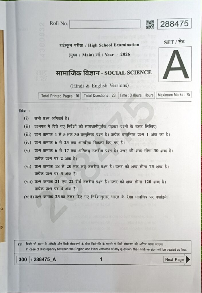 Class 10th Social Science Varshik paper 2026 Pdf Download | 10th Class samajik vigyan vaarshik paper 2026 Pdf Download | kaksha 10 Samajik vigyan Paper Pdf Download