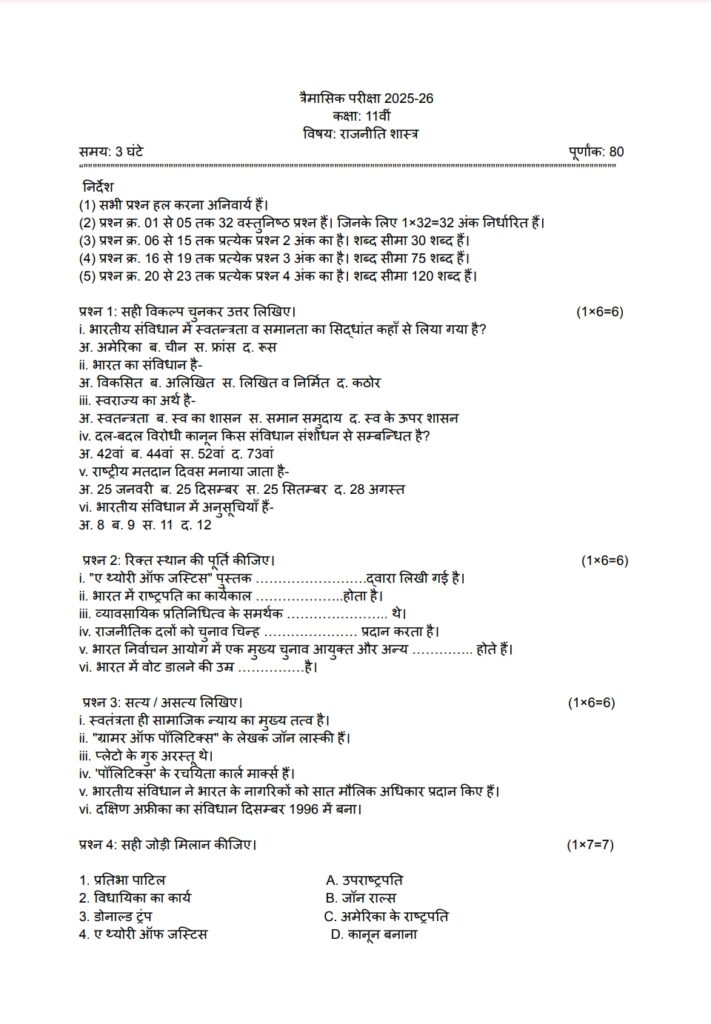 Class 11th rajniti Shastra ka trimasik paper 2025 | class 11 political science quarterly exam 2025 paper pdf Downloadby Rajesh Vishwakarma29/08/202529/08/2025 Tags:class 11th political science trimasik paperclass 11th political science trimasik pariksha2025class 11th rajniti ka paper 2024class 11th rajniti shastra varshik paper 2025class 11th rajniti trimasik pariksha 2025 26class 11th rajniti vigyan trimasik pariksha 2025class 11th trimasik paper rajniti shastraKaksha 11 rajniti Shastra masik papermp board class 11th rajniti shastra paper 2025rajniti shastra paper 11th class 2025Trimaasi paper kaksha 11 rajniti Shastratrimasik paper rajniti class 11th 2025trimasik pariksha rajniti ka paper 11th class Leave a Reply Cancel replyYour email address will not be published. Required fields are marked *Name * Email * Website Comment * Save my name, email, and website in this browser for the next time I comment. Δ