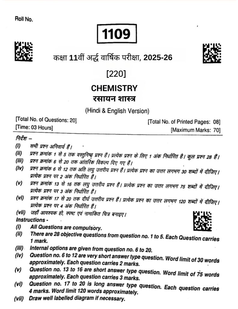 Class 12th rasayan Shastra Ardhvaarshik paper pdf Download 2025 26 | Class 12th Chemistry Half Yearly Exam paper pdf Download