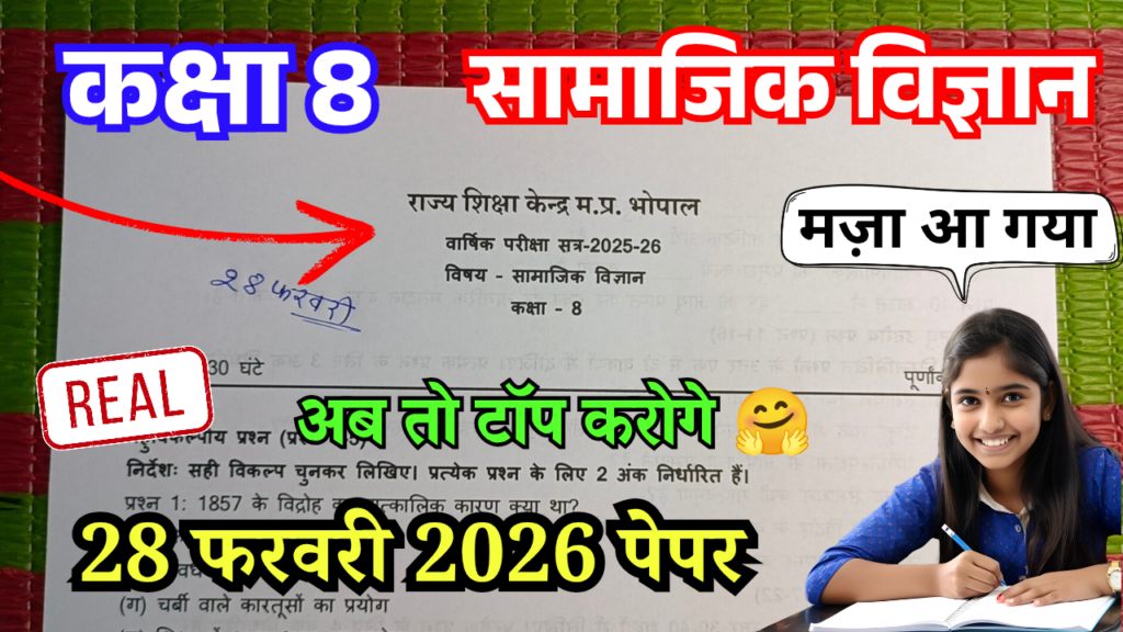 Class 8th Samajik vigyan varshik paper 2026 pdf Download | 8th Class Social Science varshik paper 2026 | kaksha 8 samajik vigyan varshik paper