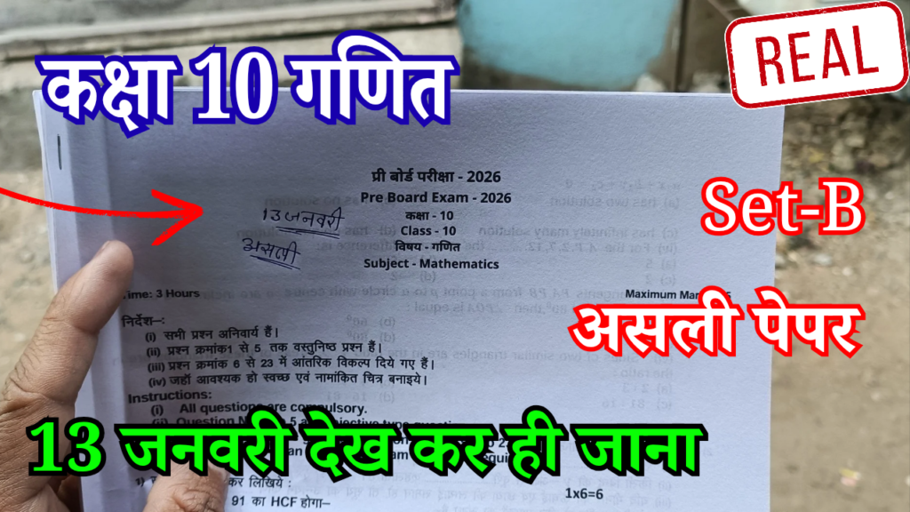 Pre Board Exam 2026 Class 10th Maths | Pre Board Exam 2026 Class 10th | Class 10th Ganit Pre Board paper 2026 | प्री बोर्ड परीक्षा 2026 कक्षा 10 गणितby Rajesh Vishwakarma12/01/202612/01/20262 Comments Pdf Download 2 thoughts on “Pre Board Exam 2026 Class 10th Maths | Pre Board Exam 2026 Class 10th | Class 10th Ganit Pre Board paper 2026 | प्री बोर्ड परीक्षा 2026 कक्षा 10 गणित” Radha 16/01/2026 at 8:01 PM Reply Tyrtgg bhyh Radha 16/01/2026 at 8:02 PM Reply Rttggghu Leave a Reply Cancel replyYour email address will not be published. Required fields are marked *Name * Email * Website Comment * Save my name, email, and website in this browser for the next time I comment. Δ
