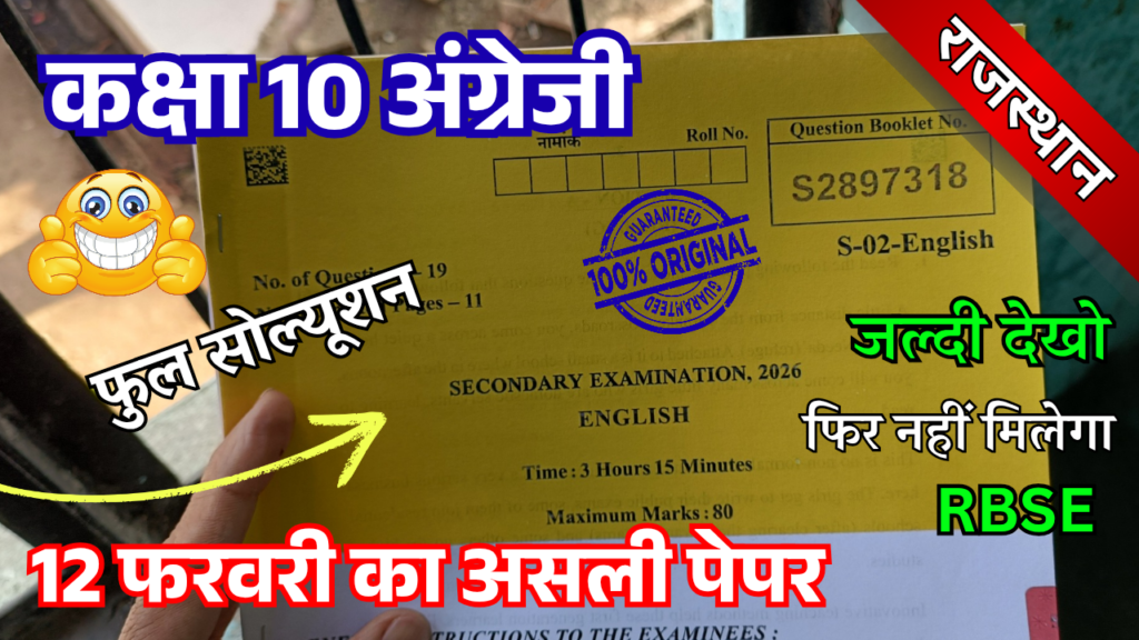 RBSE Class 10th English Varshik paper 2026 Pdf Download | kaksha 10 English Varshik paper 2026 Pdf Download rbse | 10th Class English Varshik paper Pdf Download rajasthan board