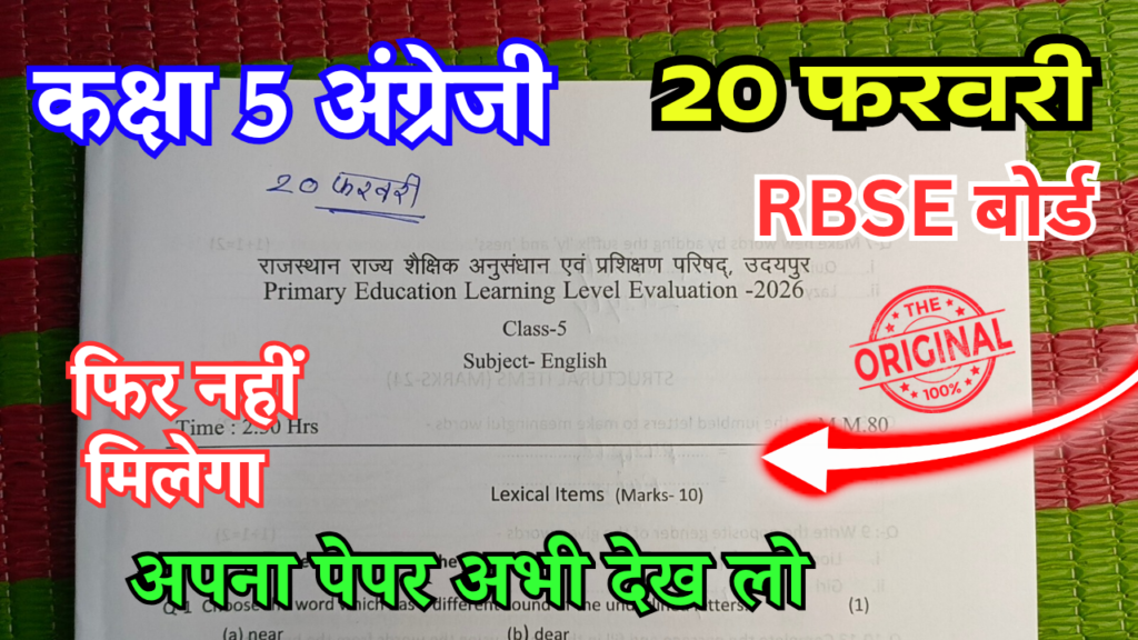 आज हम यहां पर देखने वाले हैं राजस्थान बोर्ड परीक्षा 2026 कक्षा 5 अंग्रेजी विषय का पूरा पेपर और उसका सॉल्यूशन तो चलो जानते हैं कि आपका राजस्थान बोर्ड परीक्षा 2025 कक्षा 5 अंग्रेजी विषय का पेपर
