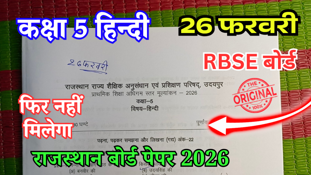 आज हम यहां पर देखने वाले हैं राजस्थान बोर्ड परीक्षा 2026 कक्षा 5 हिंदी विषय का पूरा पेपर और उसका सॉल्यूशन