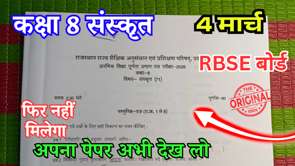 राजस्थान बोर्ड परीक्षा 2026 कक्षा 8 संस्कृत विषय का पेपर कैसा आएगा तो चलो जानते हैं उसे समझते हैं कि आपका राजस्थान बोर्ड परीक्षा कक्षा 8 संस्कृत विषय का पेपर